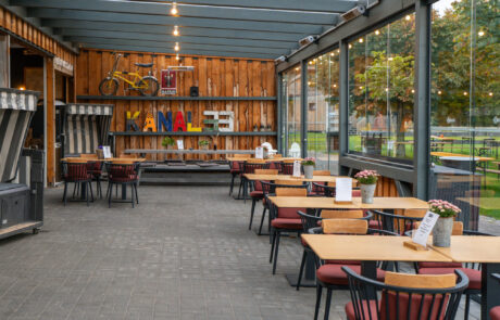 Unser Biergarten – direkt an der NOK-Route – hat einen wahnsinnig guten Blick auf den Nord-Ostsee-Kanal und einen schönen Spielplatz und ist für alle ein hervorragendes Ausflugsziel. Für unsere vierbeinigen Gäste haben wir Trinkschalen und selbstgebackene Hundekekse. Auch bei schlechtem Wetter steht ein überdachter Bereich zur Verfügung oder Sie suchen sich ein nettes Plätzchen in unserem Cafe. Dort ist auch ein barrierefreies WC.